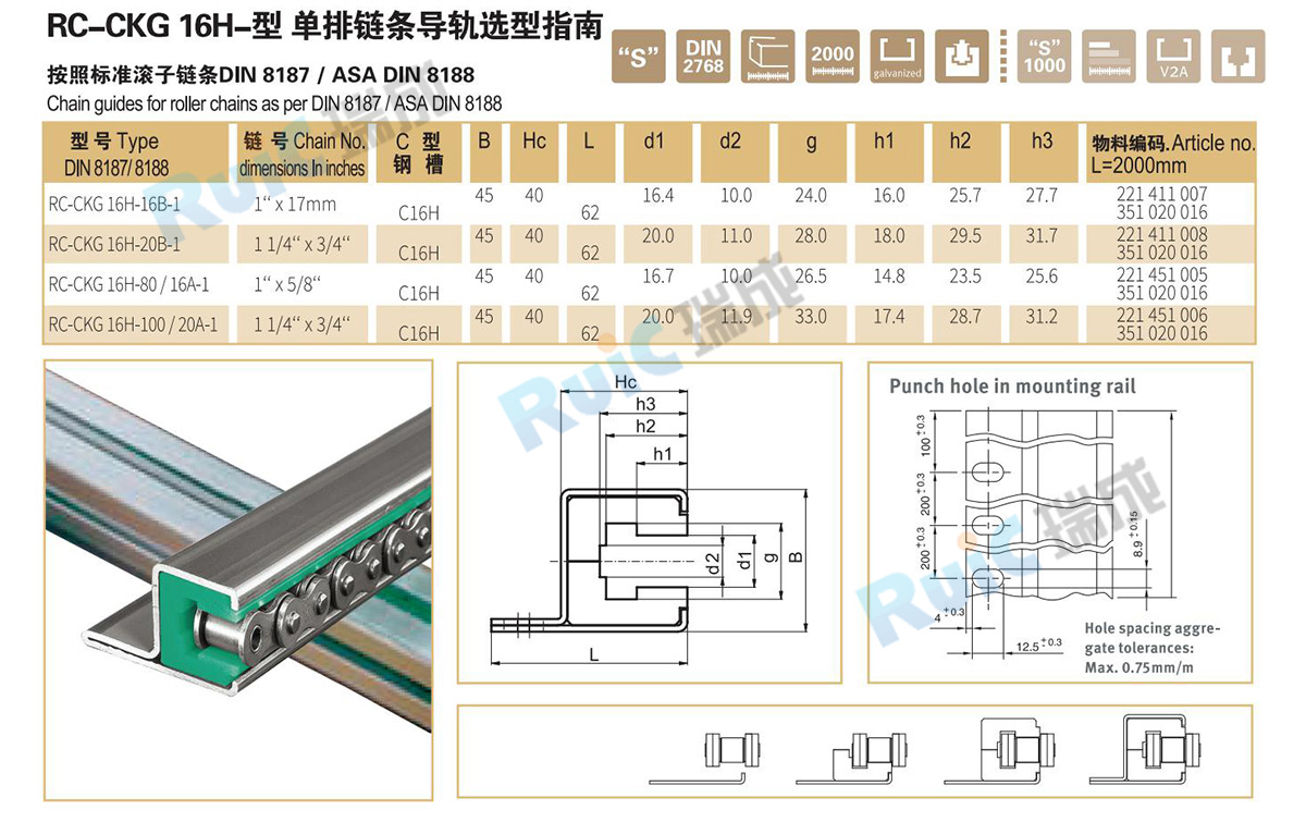 鏈條導軌-鏈條導向件,是一種靜壓導軌,用于支撐和導向鏈條,減少鏈條磨擦,降低噪音,增強鏈條使用壽命。采用840萬超高分子量聚乙烯(UHMW-PE)生產,鏈條導軌具有高耐磨耐溫,抗腐蝕,穩固,降噪音等高精度的支撐與導向。